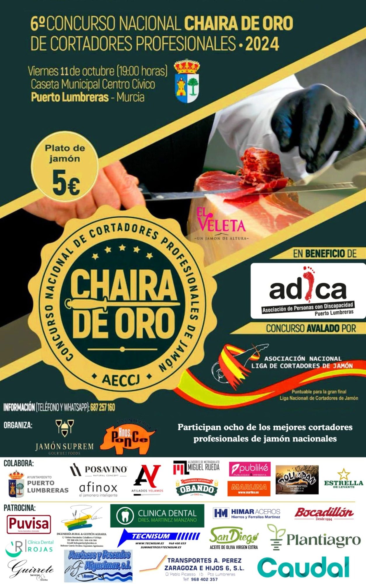 Tenemos el placer de anunciar que el próximo VIERNES 11 DE OCTUBRE se llevará a cabo la 6ª edición del Concurso de Cortadores Profesionales "Chaira de Oro" y este año será en beneficio de nuestra asociación