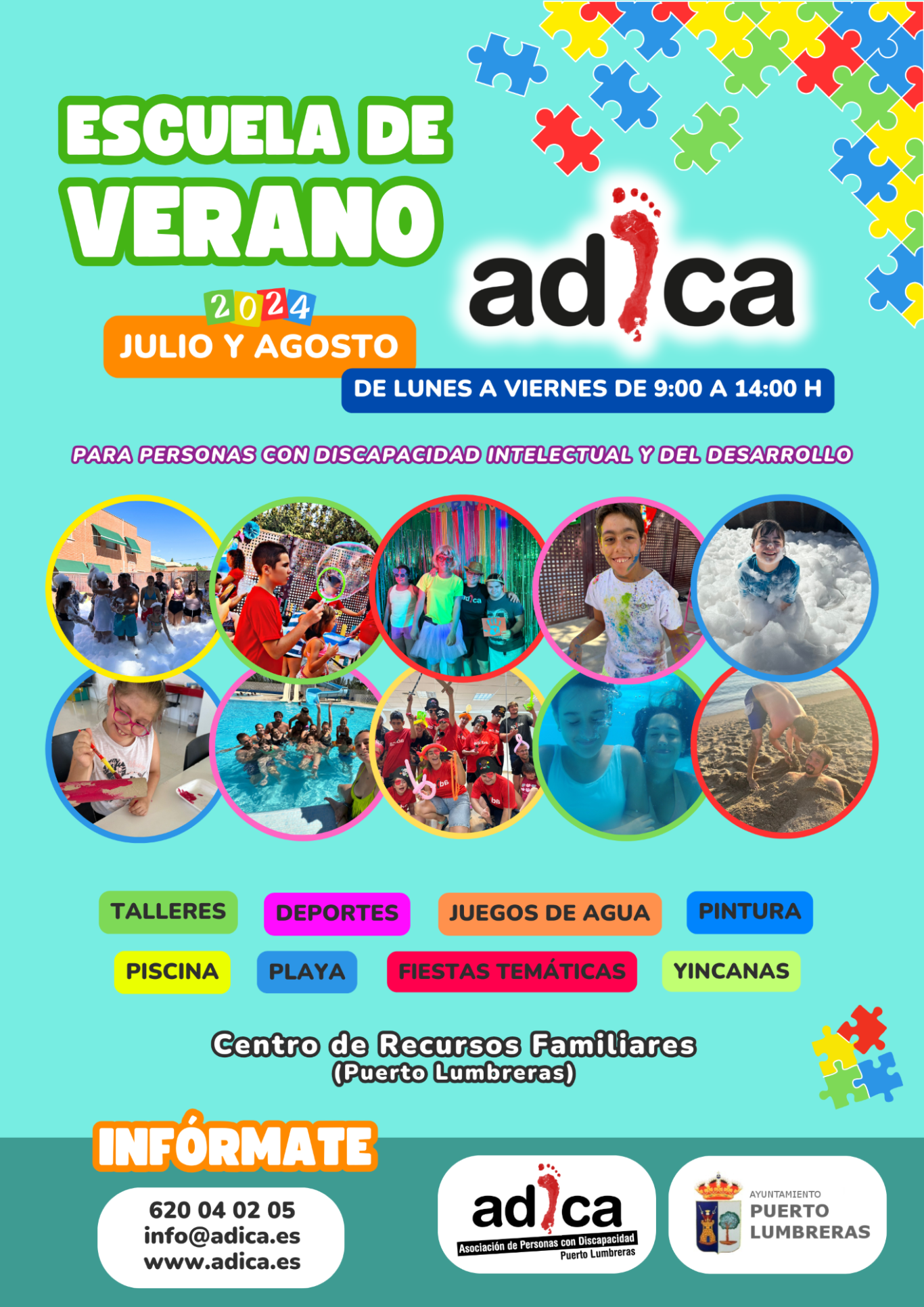 ADICA, en colaboración con el Ayuntamiento de Puerto Lumbreras, vuelve a poner en marcha el Programa de Ocio y Tiempo Libre “DIVIERT-T conciliando II” destinado a niños, adolescentes y personas adultas con discapacidad intelectual y del desarrollo.